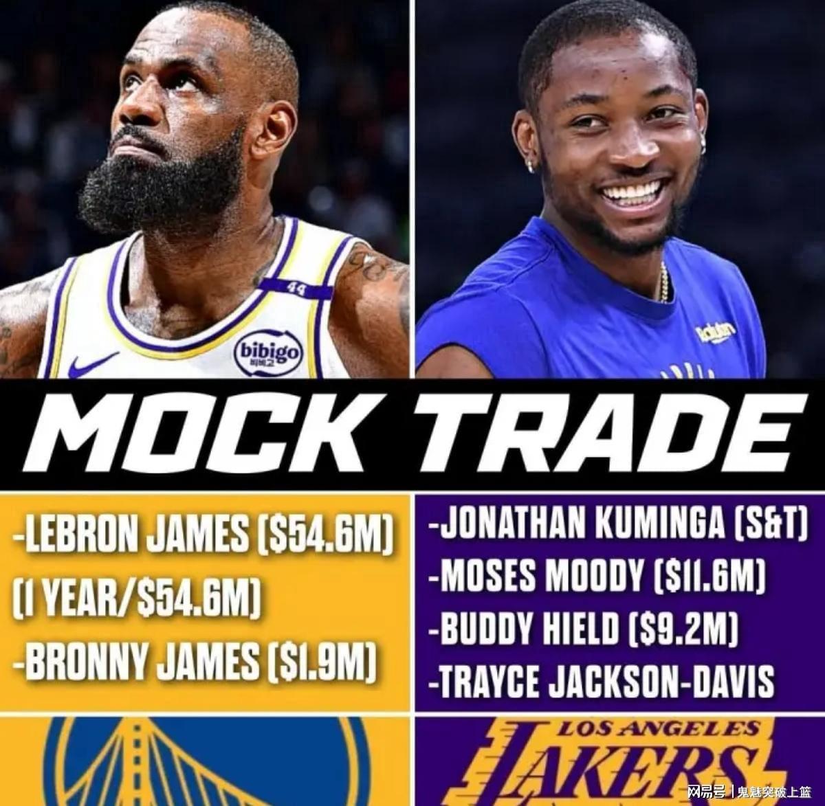 近日,美媒围绕勇士追求詹姆斯模拟了一个4换2震撼级交易方案。具体交易内容为:勇士送出乔纳森库明加+摩西穆迪+巴迪希尔德+特雷斯杰克逊戴维斯,从湖人得到勒布朗詹姆斯+布朗尼詹姆斯。